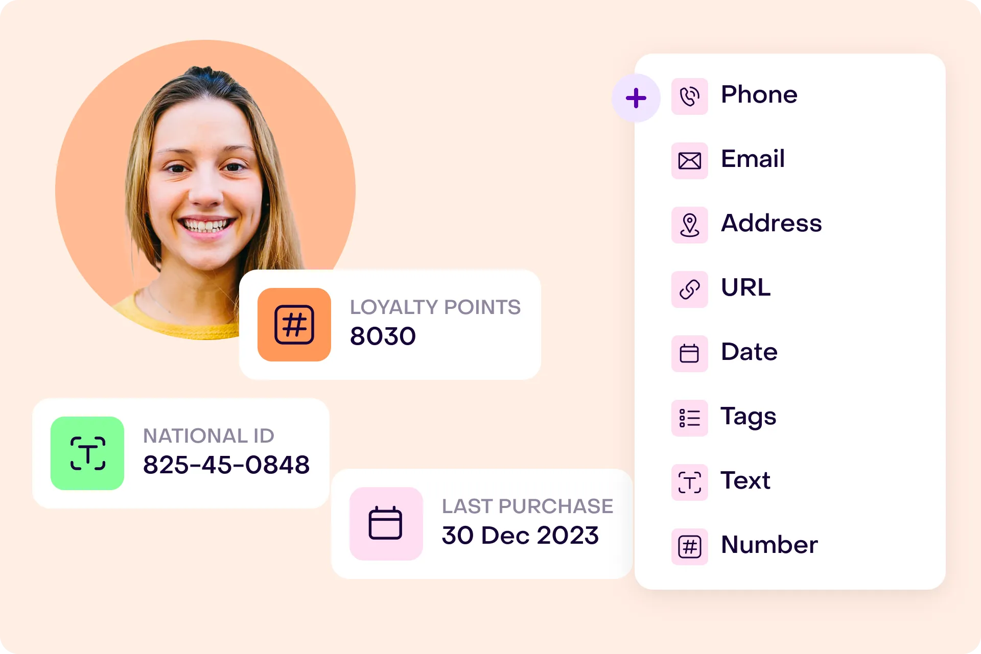 Hellotext efficiently organizes data with unlimited fields for diverse data types, including text, price, checkboxes, dates, and more; empowering you with comprehensive insights into each customer.