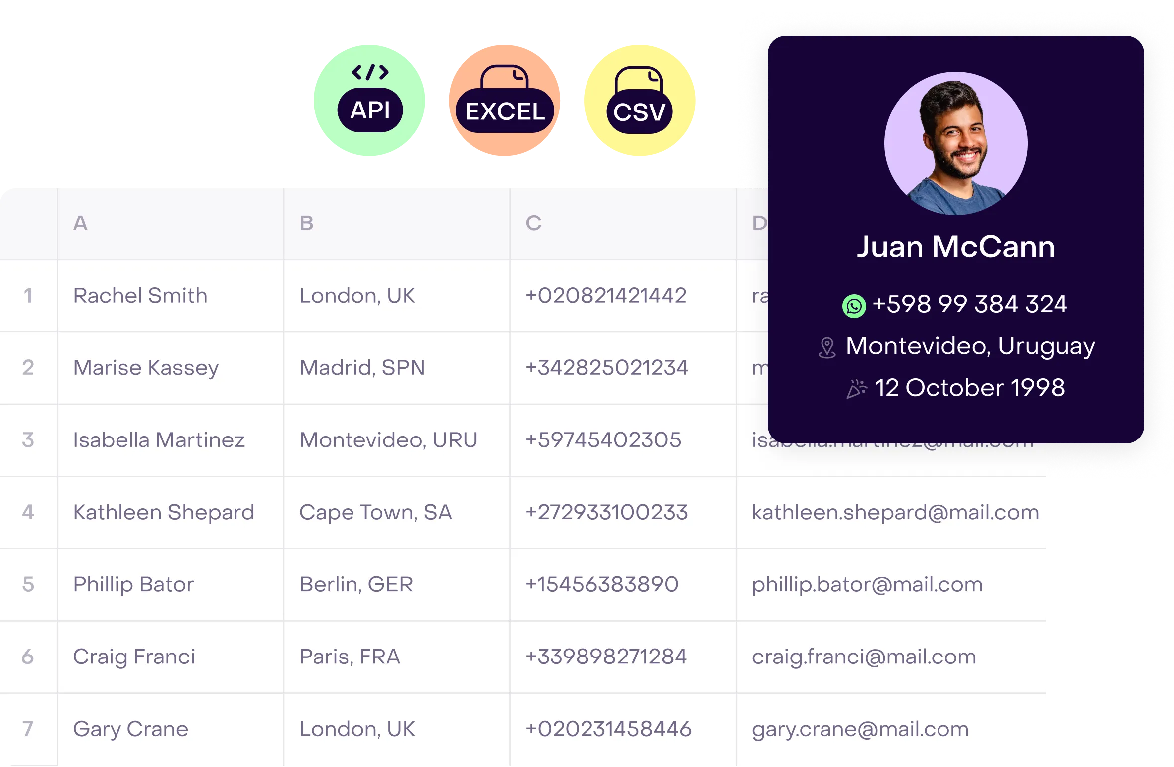 Importing customer data is a breeze with Hellotext. Our platform supports imports from CSV, Excel, and through API, ensuring you have all the information you need at your fingertips.